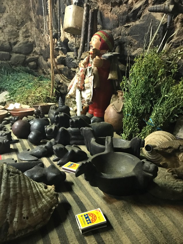 An altar that displays many native artifacts. Even matches??? Don’t have photoshop to edit out but you get the idea. Above this altar was a sacred area for honoring the ancestors as well as various instruments of Quechua life.