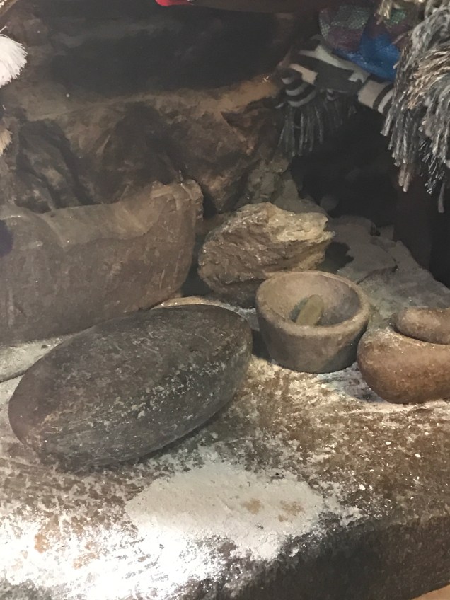 One area set aside for grinding of various grains. The Quechua people have over 147 (this number changes based on who is telling the story) varieties of corn. Each of the kernels on the cob are huge!! Three times the size of corn kernels in USA.