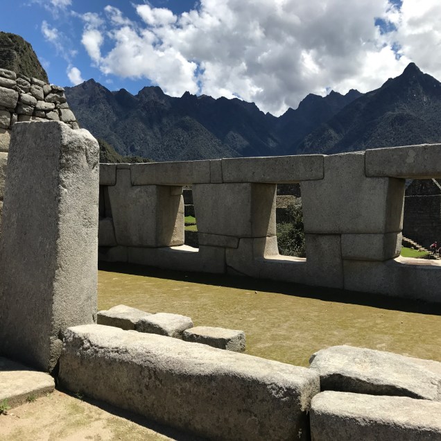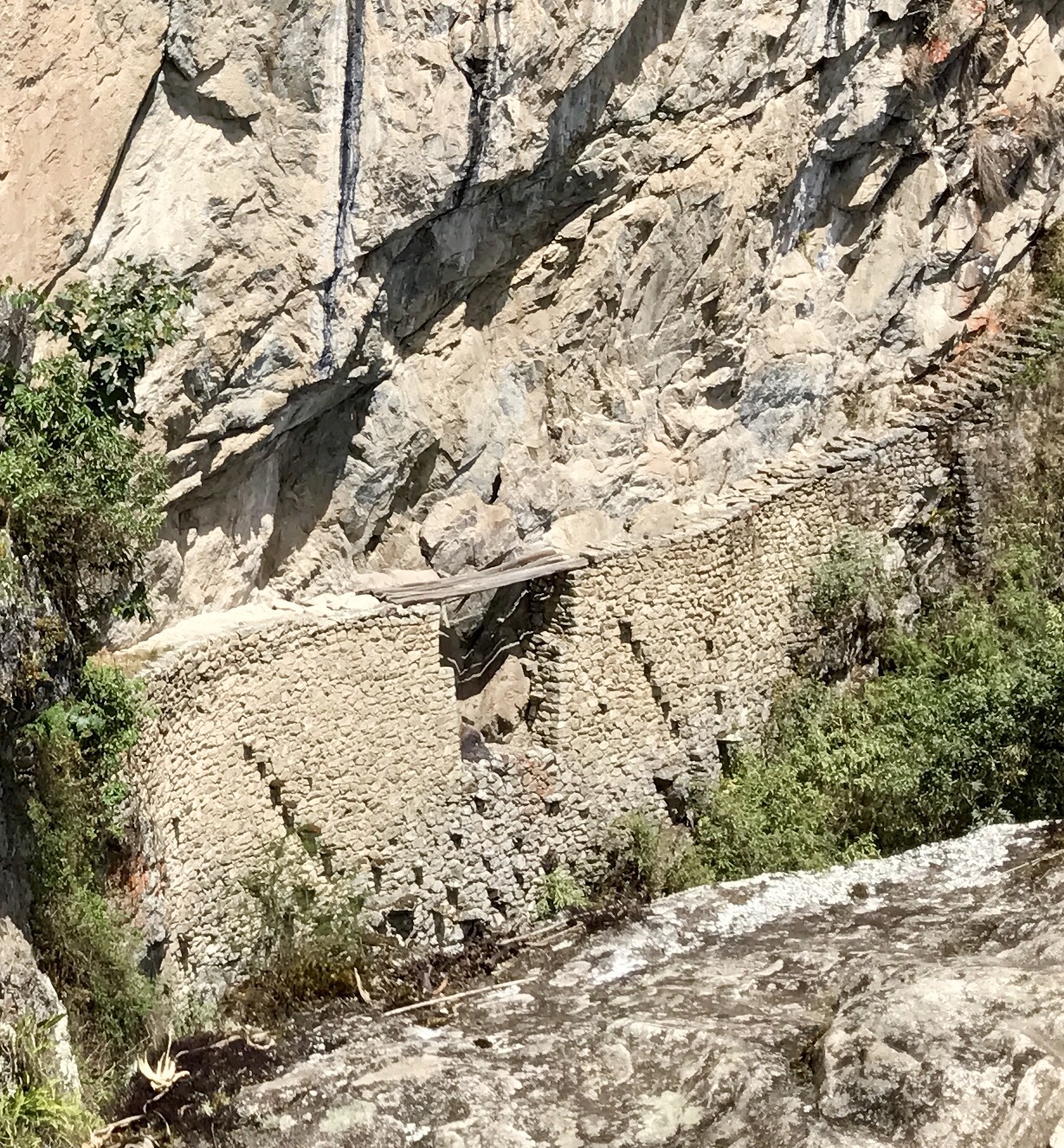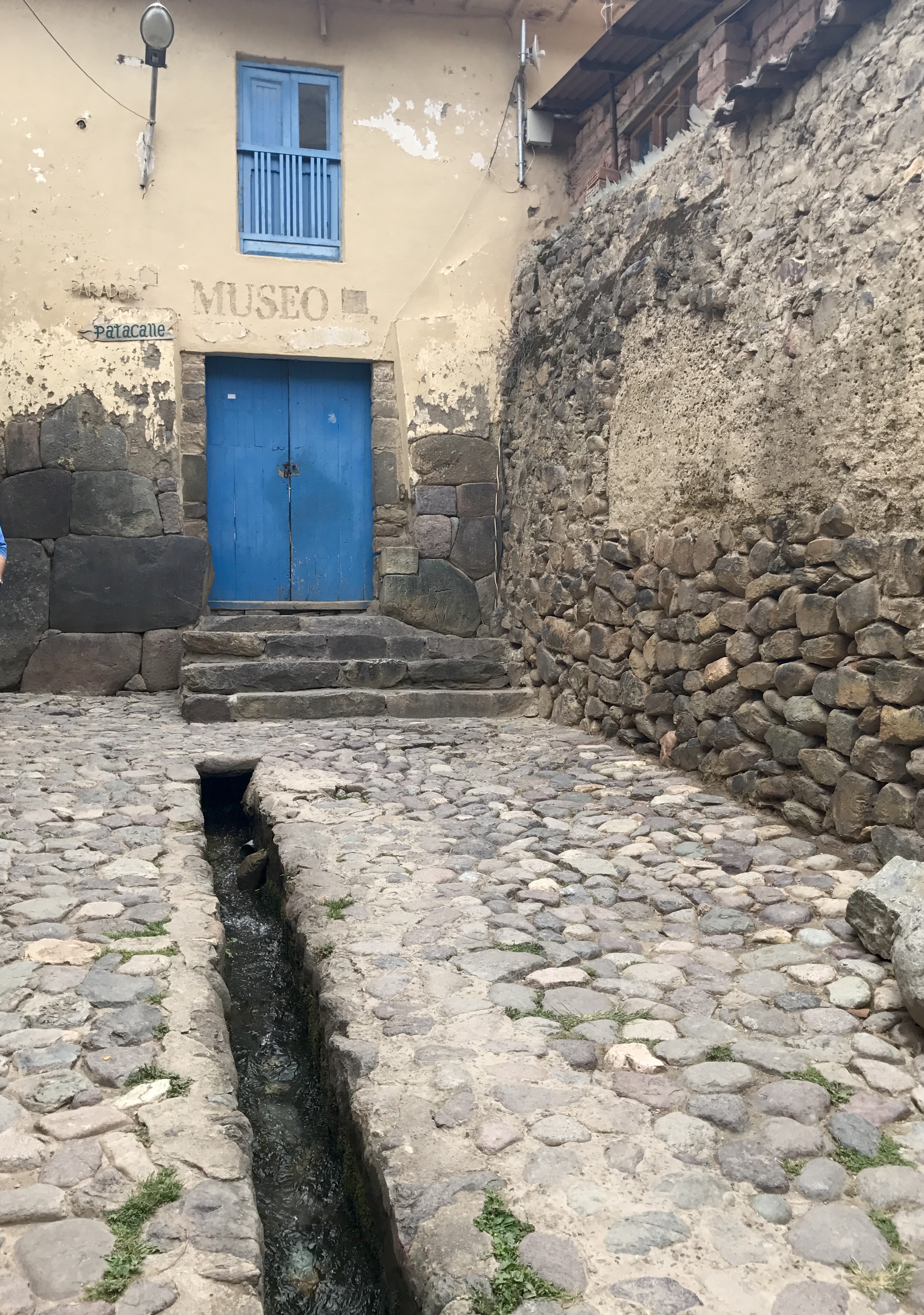 Water flows down from many glaciers to the Urubamba valley. The Inka have channeled the water to guide it to feed the farm lands and to provide fresh water for the villages and towns. These channels are seen everywhere.