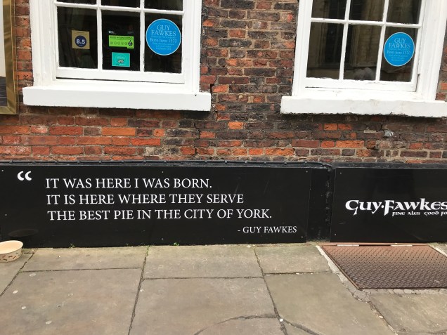 On the square of the Minster is the house the revolutionary Guy Fawkes lived in. It is now an upscale lovely pub. Somehow we are related to him.