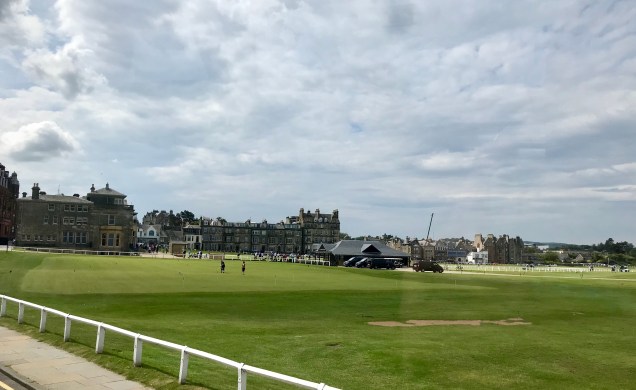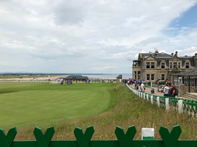 Although we landed at the airport outside of Edinburgh our first stop was not the city. We headed on up the coast to ‘The’ golf course, St. Andrews, where golf began. St. Andrews sits right on the coast and looks out over the ocean. Th course was a hub of activity.